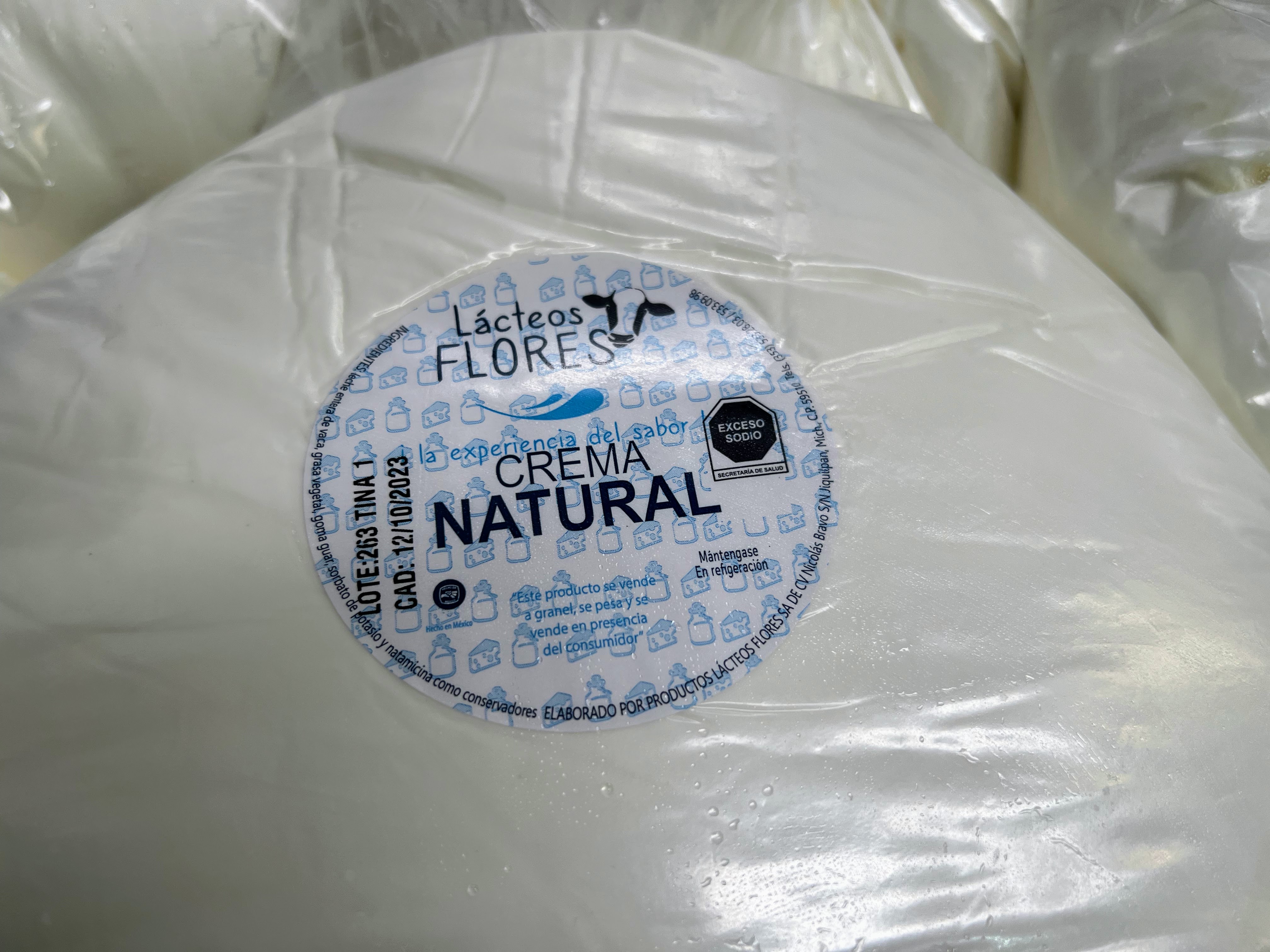 Crema de leche fresca de vaca, sabor ligeramente ácido y consistencia espesa.